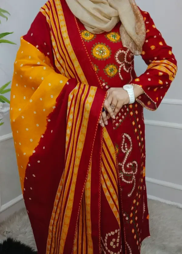 কটন ফেব্রিকের ওড়নায় রয়েছে ম্যাচিং চুনরি ডিজিটাল প্রিন্ট, যা পুরো সেটের সাথে সুন্দরভাবে মানিয়ে গেছে।