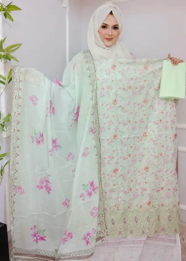 নান্দনিকতা, আরাম আর সূক্ষ্ম কারুকাজের সুন্দর মেলবন্ধনে তৈরি আমাদের Mother Cotton Shutar Kaj থ্রি-পিস। সফট মাদার কটনের উপর শুতার কাজ, ঝলমলে সিকোয়েন্স ও স্টাইলিশ অরগাঞ্জা প্যানেল এই ড্রেসটিকে দিয়েছে একেবারে প্রিমিয়াম ও ফেস্টিভ লুক।