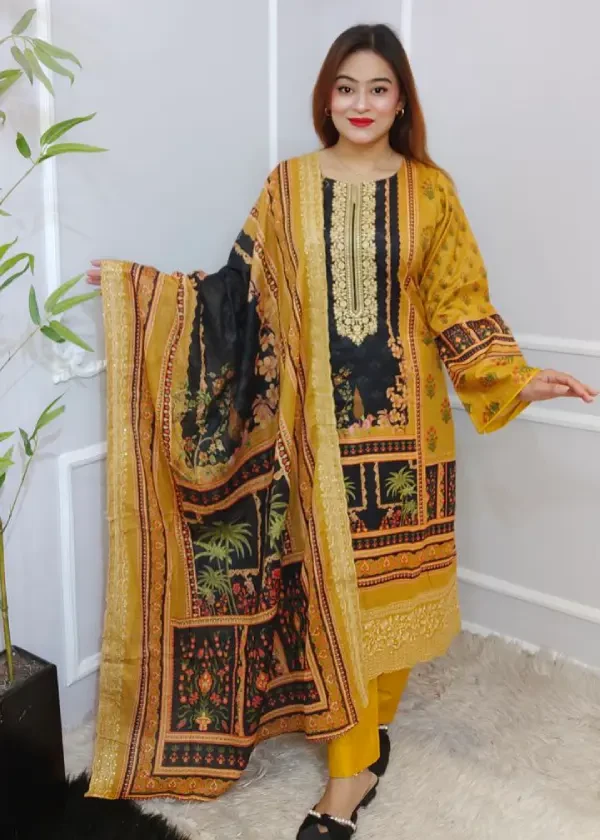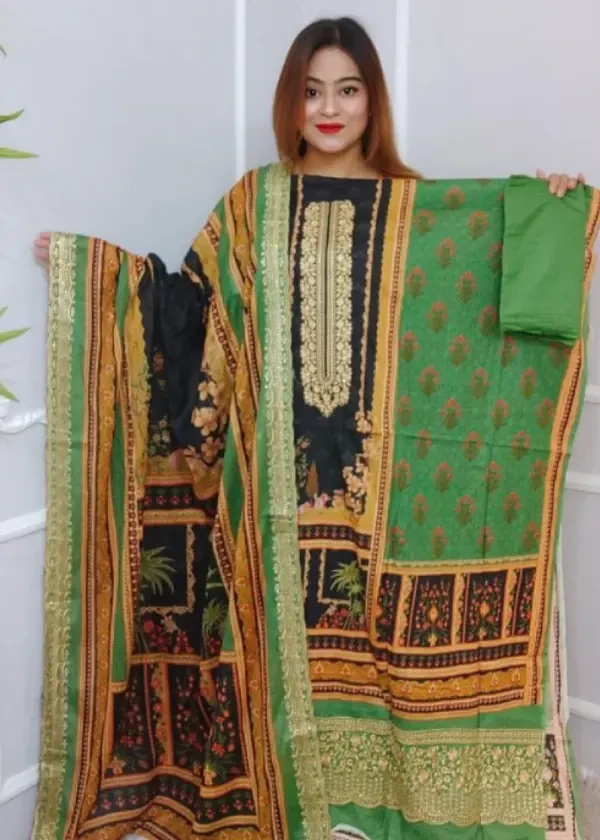 যারা আরাম, স্টাইল এবং প্রিমিয়াম ফিনিশ একসাথে চান, তাদের জন্য এই কটন থ্রি-পিস ড্রেস নিখুঁত পছন্দ। নরম কটন ফেব্রিক এবং সূক্ষ্ম এমব্রয়ডারির মেলবন্ধনে তৈরি, যা যেকোনো পার্টি, দাওয়াত বা ডেইলি ওয়্যারের জন্য উপযুক্ত।