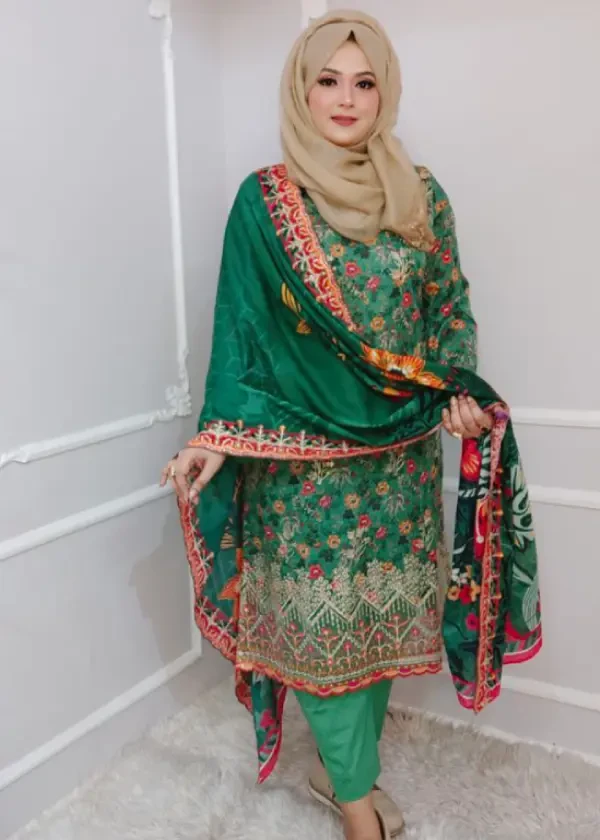 কটন ওড়নায় রয়েছে ফ্লোরাল ডিজিটাল প্রিন্ট ও সিকুইনস এমব্রয়ডারি কাজ, যা পুরো সেটের সাথে সুন্দরভাবে মানিয়ে যায়।