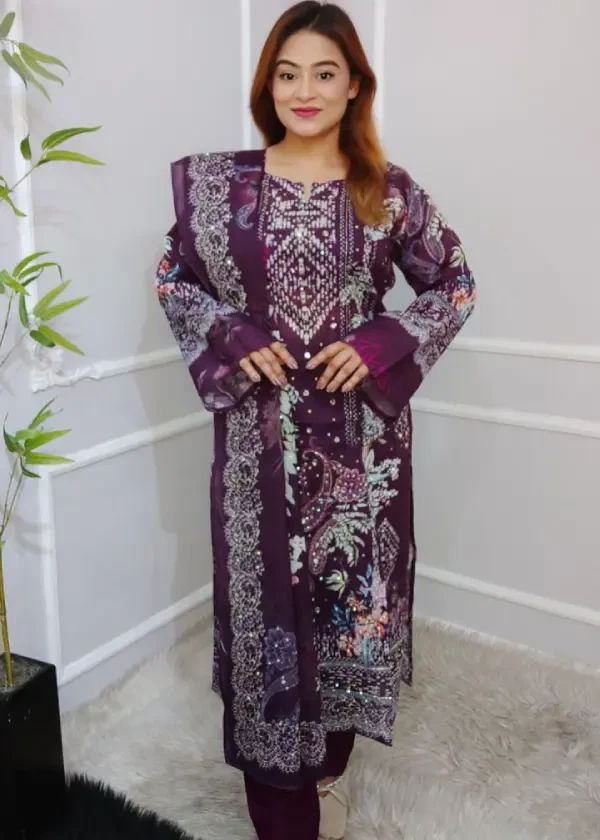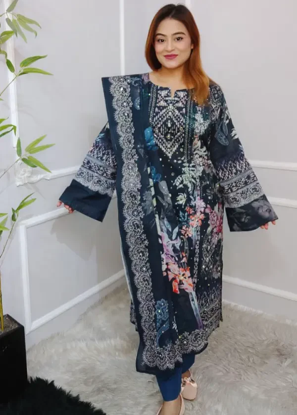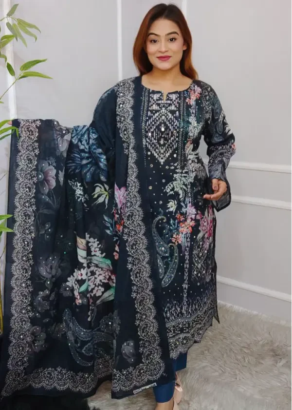 উন্নত মানের কটন ফেব্রিকে তৈরি। কামিজে রয়েছে সুন্দর ফ্লোরাল ডিজিটাল প্রিন্টের সাথে মিরর ও কারদানা কাজ, যা ড্রেসটিকে করেছে আরও আকর্ষণীয় ও গর্জিয়াস।
