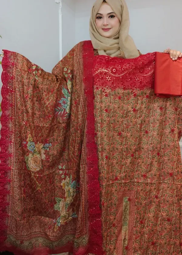 উন্নত মানের মাদার কটনে তৈরি। এতে রয়েছে সিকোয়েন্স শিফলি এমব্রয়ডারি ও লেসকারি কাটওয়ার্ক, যা ড্রেসটিকে করে তুলেছে আরও আকর্ষণীয় ও এলিগ্যান্ট।