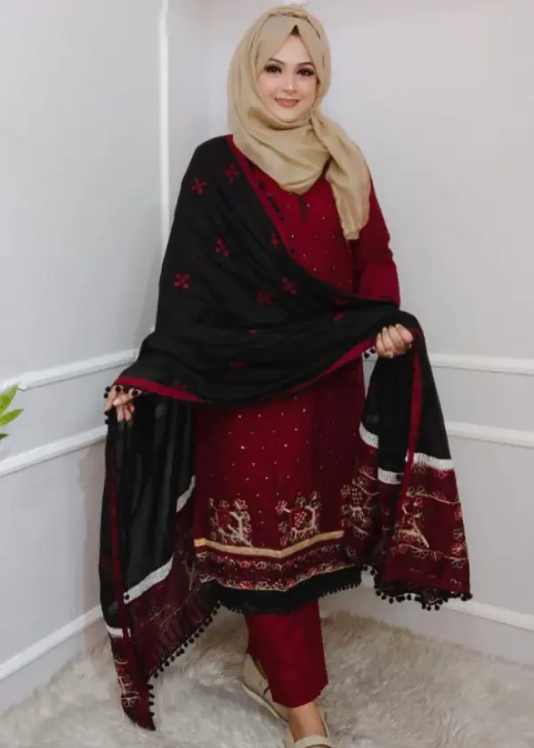 রিচ মারুন শেডে Shaira Shakira Inspire (Maroon – Semi Stitched)—নরম কটনে ক্রস এমব্রয়ডারি ও লেস কাজের ক্লাসি কম্বিনেশন। এলিগ্যান্ট, ট্রেন্ডি ও প্রিমিয়াম লুকের জন্য পারফেক্ট চয়েস। ✨