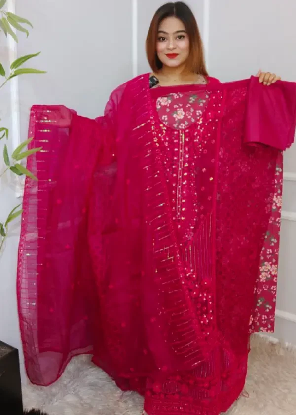 যারা প্রিমিয়াম ফিনিশ এবং আরাম একসাথে খুঁজছেন—তাদের জন্য এই থ্রি-পিস ড্রেস একদম পারফেক্ট। নরম কোটা কটন আর সূক্ষ্ম এমব্রয়ডারির নিখুঁত মেলবন্ধনে তৈরি এই ড্রেসটি যেকোনো পার্টি, দাওয়াত বা বিশেষ অনুষ্ঠানের জন্য উপযুক্ত।
